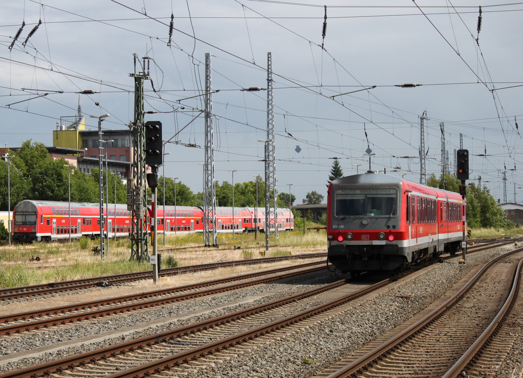 628 435-9 verließ am 13.06.2014 Rostock Hbf Richtung Güstrow/Lübeck links stehen 3xDABbuzfa 760+2xDBuza748.